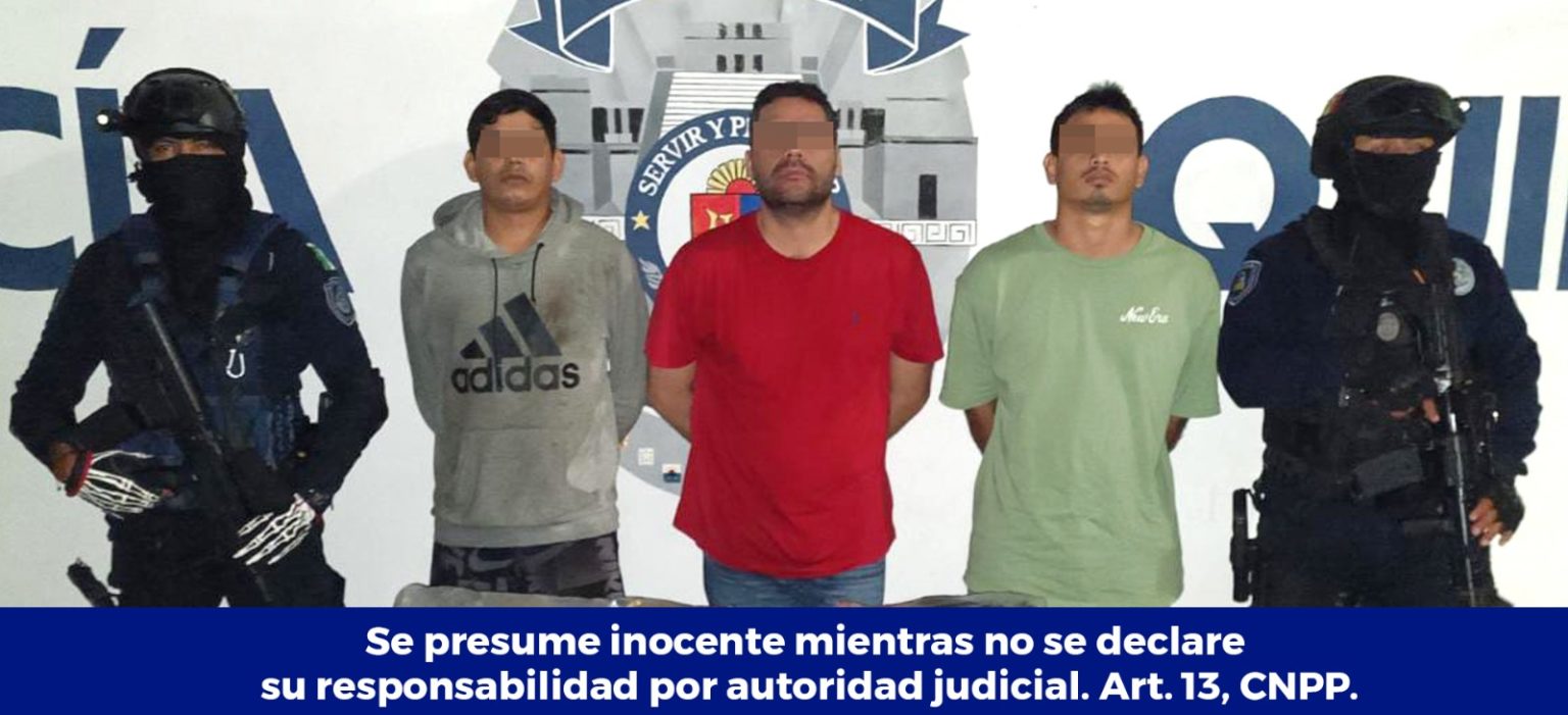 PLAYA DEL CARMEN, Quintana Roo, 04 de febrero. – Elementos de la Secretaría de Seguridad Pública de Quintana Roo, realizaron la detención de Adán Antonio “N”, Erick “N” y Mauricio “N”, por presunta participación en delitos contra la salud.
