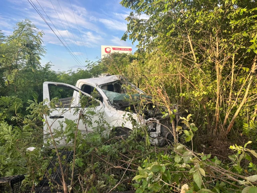 Debido a esto no se percató de una camioneta Nissan np300 de la empresa Central Foods, a la que colisionó por alcance, haciendo que se saliera de la carretera y terminara completamente destruida.
