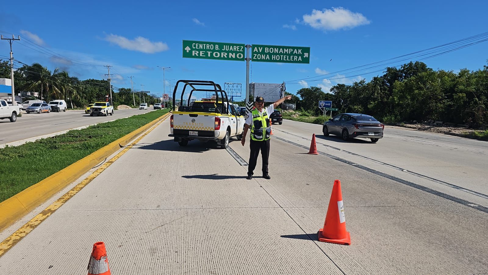 Alrededor de las 10:30 de la mañana se informó sobre un siniestro en la citada vialidad abajo del puente de paso a desnivel que conecta con las avenidas Kabah y Bonampak.