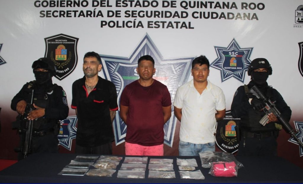 CANCÚN, Quintana Roo, 27 de junio. – La Secretaría de Seguridad Ciudadana (SSC), en colaboración con el Grupo de Coordinación para la Construcción de Paz puso a disposición a tres personas por su probable participación en delitos contra la salud, en Benito Juárez.