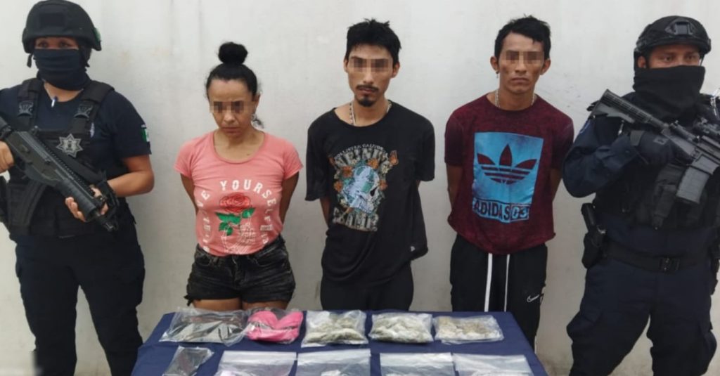 La SSC logró la detención de Diego “N”, Teresa “N” y José del Carmen “N”. Los hechos se registraron cuando elementos de la corporación realizaban labores de vigilancia en la calle 52 Norte, con 40 avenida Norte, en la colonia Luis Donaldo Colosio.