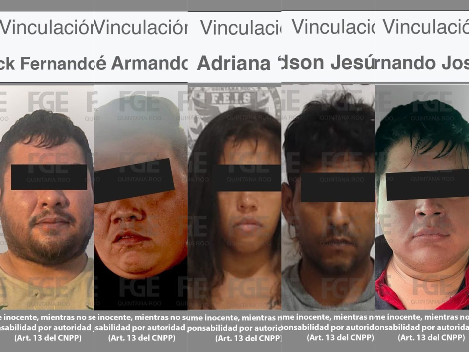 Los ahora imputados son Edson de Jesús “N” y Adriana “N”, detenidos en Benito Juárez, así como José Armando “N”, Erik Fernando “N” y Hernando José “N” capturados en Mérida.