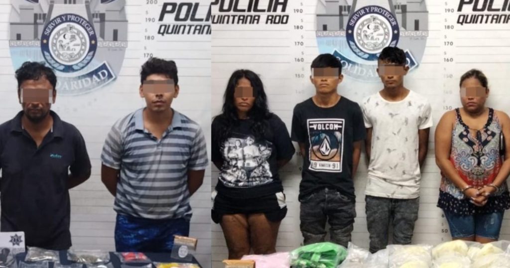 Cuando realizaban vigilancia en la colonia In House, elementos de la Policía Preventiva aseguraron a Nayeli “N” de 37 años de edad, originaria de Acapulco, Roxana “N” de 23 años, Victor “N” de 18 años y Jesús “N” de 18 años, originarios de Quintana Roo en posesión de 85 envoltorios con posible marihuana, 10 con lo que parece cocaína y 10 con la posible droga llamada piedra.
