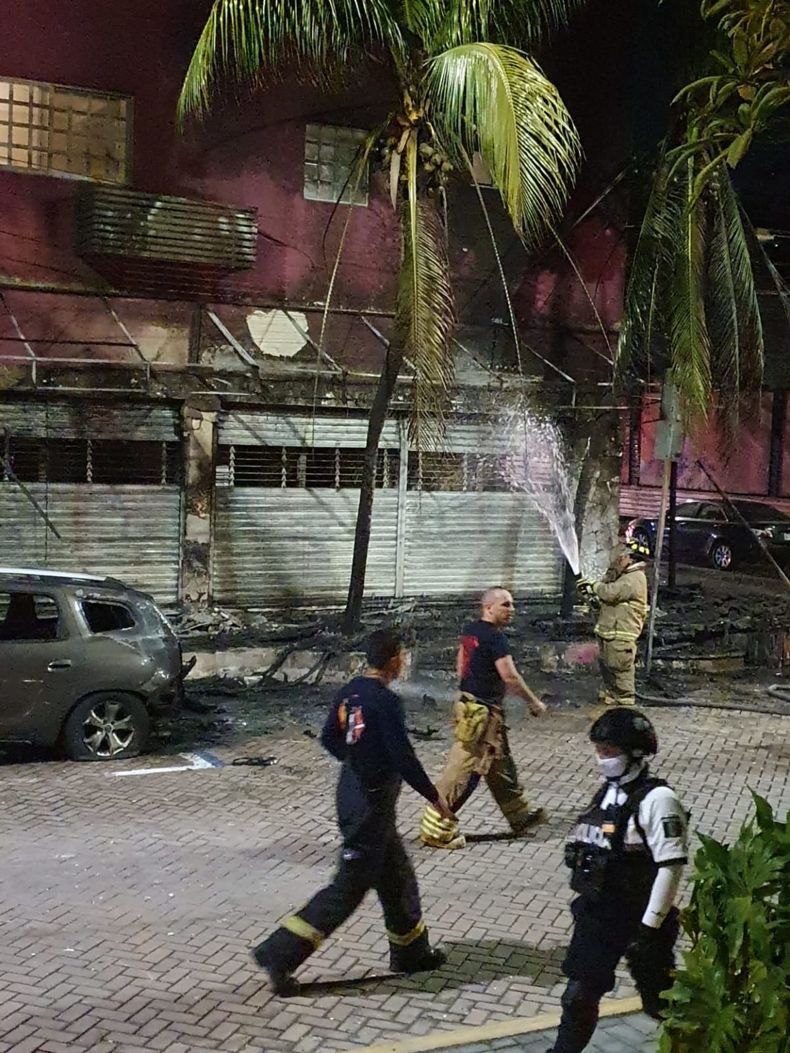 Autoridades correspondientes se desplazaron hasta el lugar de los hechos, donde de manera inmediata procedieron a sofocar el siniestro de manera inmediata debido a que el fuego había consumido en sí totalidad una palapa utilizada como tinglado y dañado vehículos estacionados en la parte de abajo de la palapa.