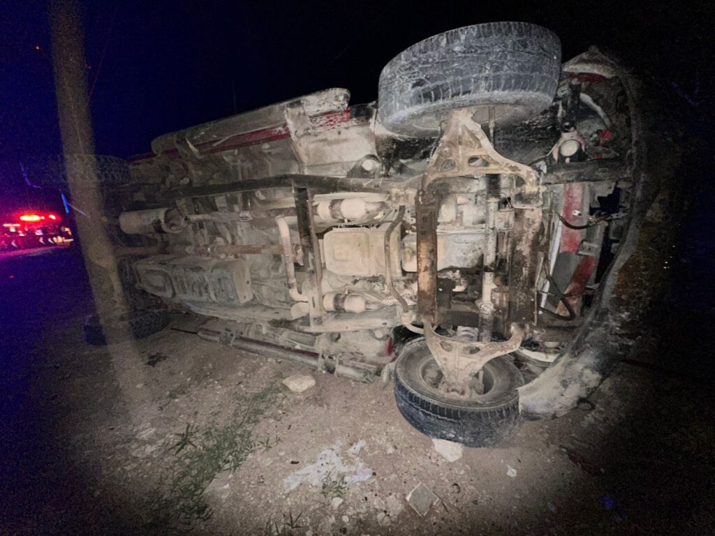 Camioneta se vuelca en Xpu Ha; ocupantes resultan ilesos