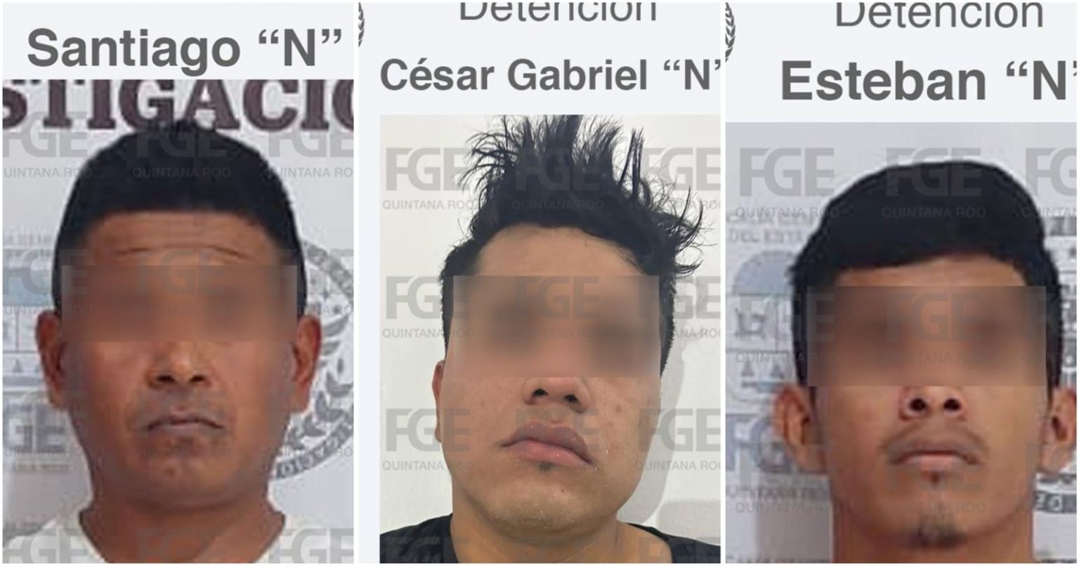 Tulum, Quintana Roo, 29 de marzo de 2024. – La Fiscalía General del Estado dio conocer este día la captura de César Gabriel “N”, Santiago “N” y Esteban “N”, involucrados en el delito de extorsión, informó la Fiscalía General del Estado.