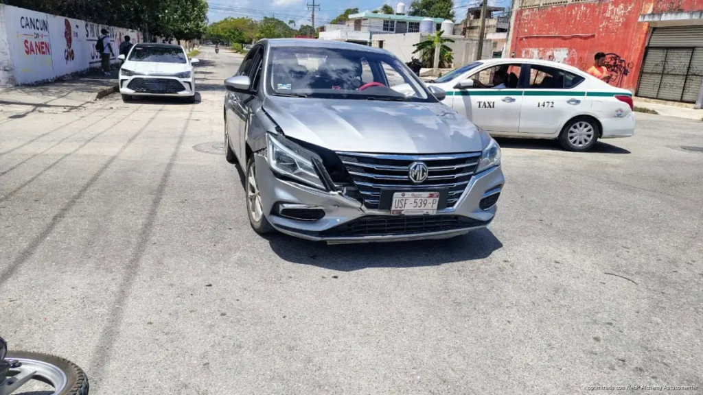 Motociclista resulta lesionado tras choque con auto en Cancún; accidente ocurrió en cruce conflictivo de la región 227.