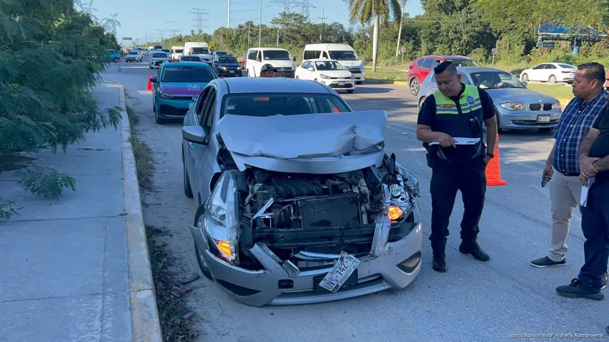 PLAYA DEL CARMEN, Quintana Roo, 31 de enero de 2026.– Al circular a exceso de velocidad sobre el bulevar Playa del Carmen, el conductor de un vehículo particular se impactó contra la parte trasera de una combi de transporte de pasajeros, dejando como saldo dos personas lesionadas y severos daños materiales.