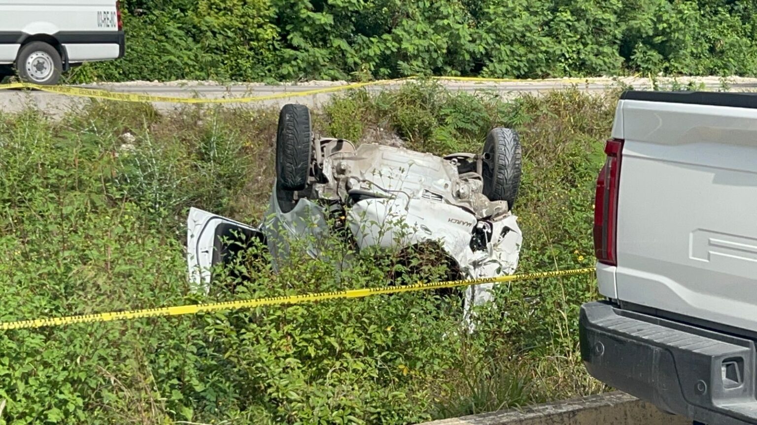 El hecho ocurrió alrededor de las 9:30 de la mañana, en el kilómetro 319, de la carretera federal 307, a unos metros de la entrada de Puerto Morelos, cuando al parecer una familia que viajaba en un Nissan March, color blanco, fueron impactados por un vehículo que lo sacó de la vialidad y terminaron saliéndose de la vía.
