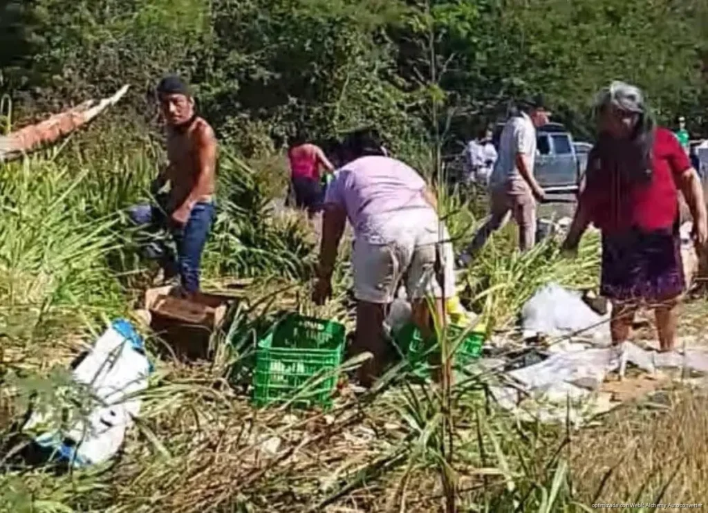 Luego de que conductores notaron del incidente, entre niños, hombres y mujeres rapiñaron de inmediato la camioneta que se encontraba cargada de frutas y verduras, para después uir del lugar.