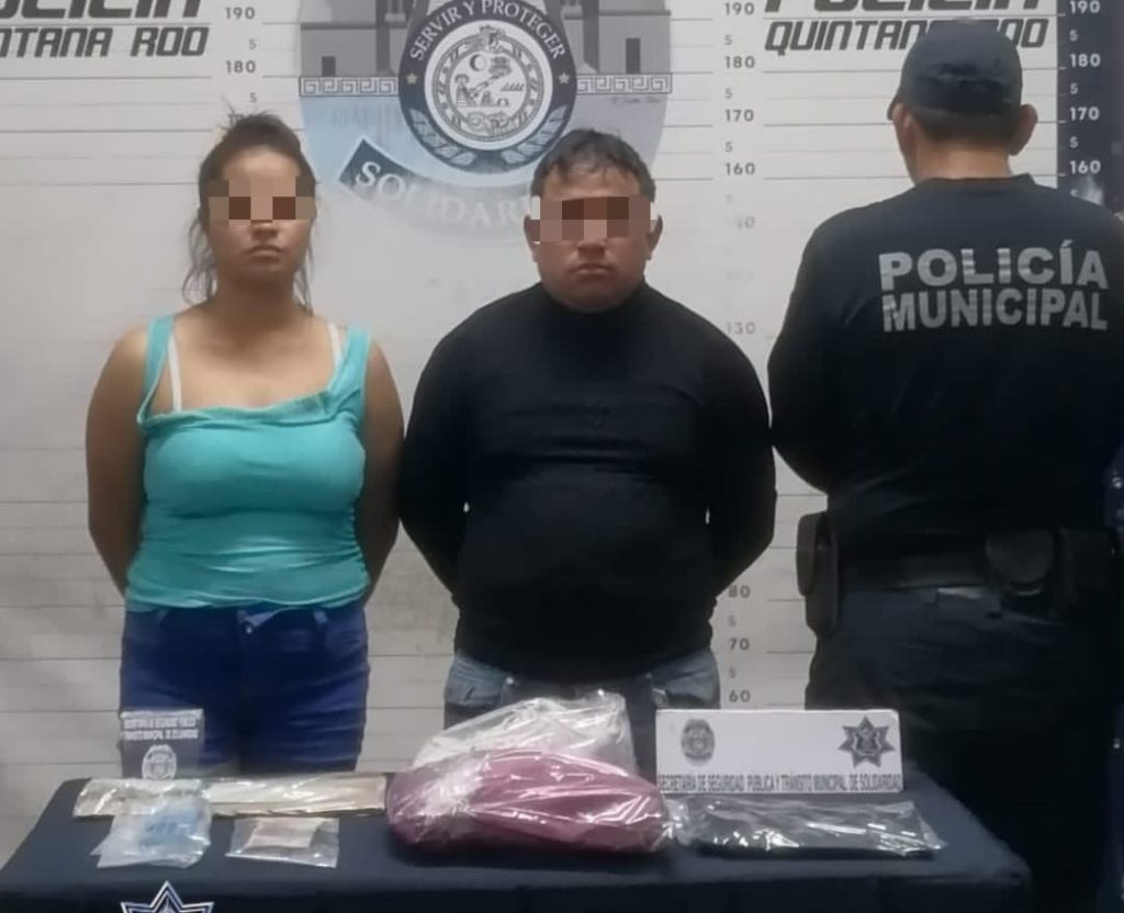 Playa del Carmen, Quintana Roo, 28 de febrero de 2024. – La Policía Municipal de Solidaridad aseguró a dos personas durante un operativo de búsqueda ante el reporte de robo con violencia en dos comercios del fraccionamiento Villas del Sol.