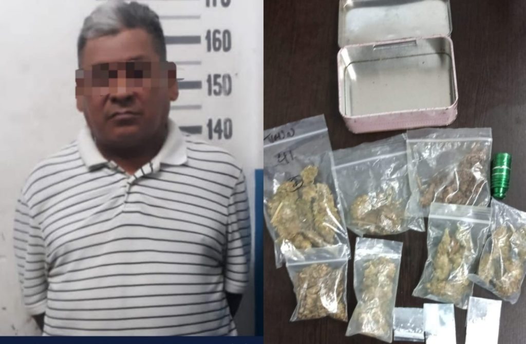 Por la posible comisión de un delito, procedieron a realizarle una revisión de seguridad a Roberto “N” de 51 años de edad, a quien se le encontró entre sus pertenencias 7 dosis de vegetal verde con características similares a la marihuana y 3 dosis de polvo blanco con las características de la cocaína.