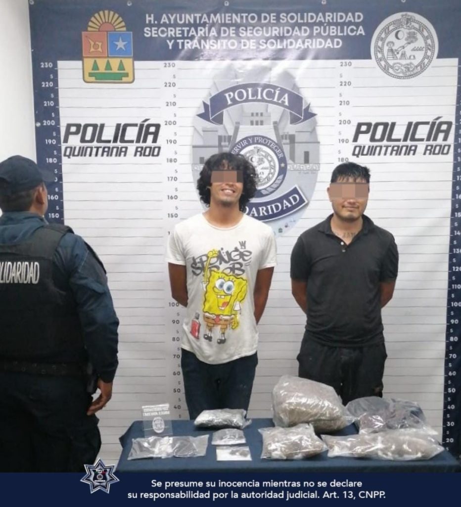 Playa del Carmen, 24 de diciembre. – A unas horas de la celebración de la Navidad, policías municipales de Solidaridad detuvieron a cuatro sujetos que llevaban 60 dosis de diferentes drogas.