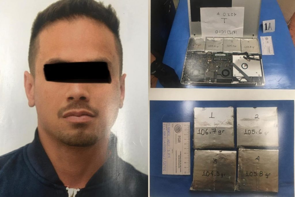 En un comunicado, se precisó que de acuerdo con los actos de investigación realizados en la indagatoria, elementos de la Guardia Nacional detuvieron al hoy sentenciado, quien arribó en un vuelo procedente de Bogotá, Colombia, a la terminal dos del aeropuerto Internacional de Cancún y a quien le aseguraron en el interior de una computadora Laptop, 604 gramos cinco miligramos de cocaína.