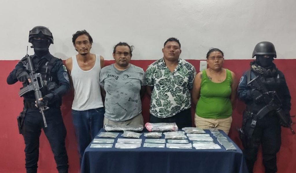 CHETUMAL, Quintana Roo, 05 mayo. –  La Secretaría de Seguridad Ciudadana (SSC) logró la detención de Didier “N” de 37 años, Anahí “N” de 26 años, Daniel “N” de 24 años y Rafael “N” de 44 años, por su probable participación en delitos contra la salud en Othón P. Blanco.