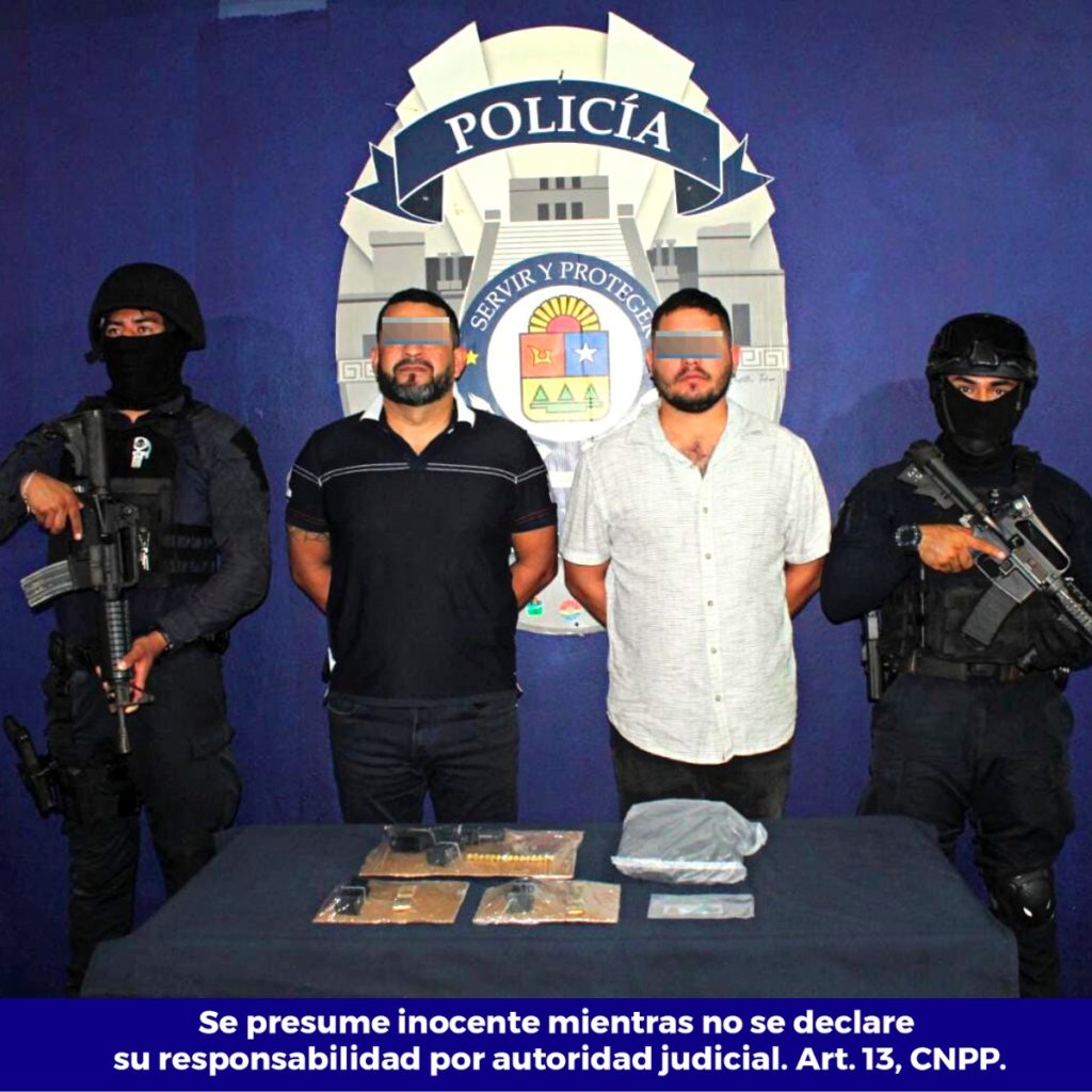 Cancún, 13 de enero. – Policías de la Secretaría de Seguridad Pública de Quintana Roo, detuvieron a Pedro “N” y Román Enrique “N”, por su presunta participación en los delitos de desobediencia, resistencia de particulares, portación, fabricación, importación y acopio de armas prohibidas.