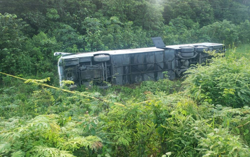 FELIPE CARRILLO PUERTO, Quintana Roo, 25 de octubre.- Tres muertos y 11 lesionados fue el resultado de la volcadura de un autobús en la carretera Chetumal-Felipe Carrillo Puerto.