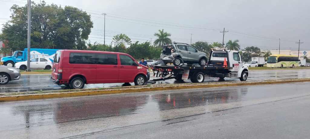 PLAYA DEL CARMEN, Quintana Roo, 27 de enero. – Aparatoso percance vehicular se registró sobre el Boulevard Playa del Carmen, el conductor de una camioneta que, por la falta de precaución ante las condiciones de lluvia, impactó por alcance a otro vehículo y lo aventó contra el camellón central.