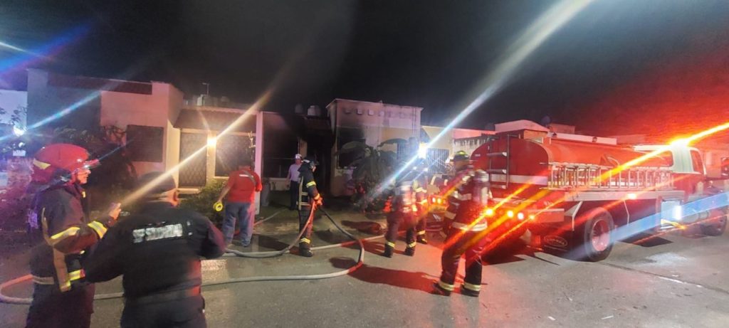 PLAYA DEL CARMEN, Quintana Roo, 24 de diciembre. – La madrugada de este sábado el cuerpo de bomberos de Solidaridad sofocó un incendio ocurrido en el fraccionamiento Bosque Real, sin que se reportaran personas heridas, solo daños materiales, se presume que la causa del siniestro fue ocasionada por un corto circuito.