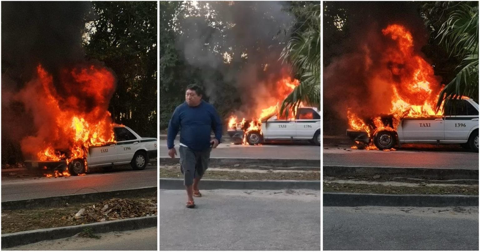 Alrededor de las 7:00 de la mañana se informó que en la tercera etapa de Villas Otoch, en la supermanzana 247, el taxi con número 1396, se estaba incendiando.