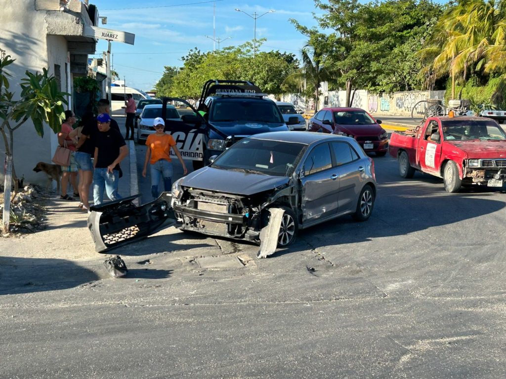 PLAYA DEL CARMEN, Quintana Roo, 07 de agosto. – El conductor de un tráiler que circulaba en la colonia Ejido realizó un corte de circulación a un vehículo particular, cuando quiso doblar en una esquina y no midió su distancia dejando a miles de pesos en daños materiales al arrancar la parte delantera del auto.