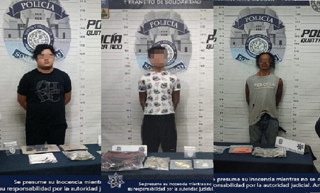 Playa del Carmen, Quintana Roo, 21 de julio. – Con acciones contundentes contra la delincuencia, Policías Municipales de Solidaridad dan resultados positivos, como la detención de 3 sujetos y el aseguramiento de un arma de fuego y diversos narcóticos en tres hechos distintos durante la noche.