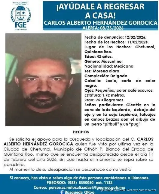 CHETUMAL, Quintana Roo, 13 de febrero. – El cuerpo sin vida, con signos de tortura localizado en la colonia irregular Mártires Antorchistas, fue identificado como Carlos Gorocica, trabajador del Planetario Yook’ ol kaab, quien fue reportado como desaparecido por su familia, la tarde del jueves, al no volver a casa después de salir de su lugar de trabajo.