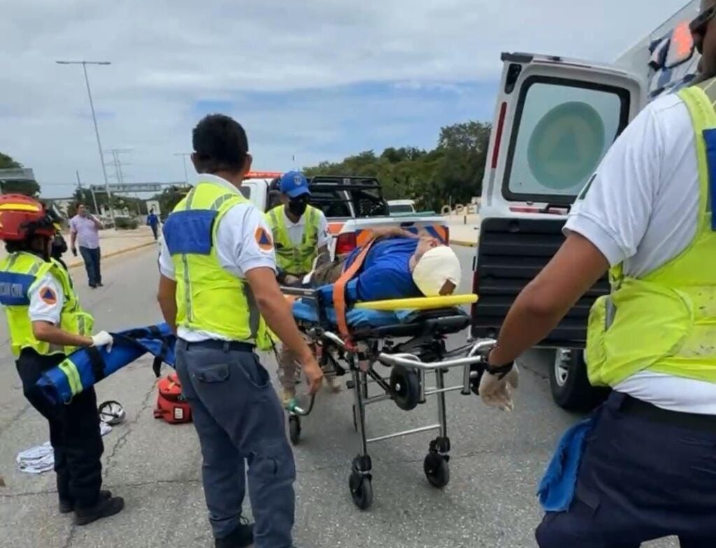 PLAYA DEL CARMEN, Quintana Roo,11 de Agosto– Un motociclista resultó gravemente herido tras perder el control de su unidad e impactarse contra el costado de un camión que transportaba productos congelados, en hechos ocurridos la tarde de este lunes frente al complejo Corasol, sobre el bulevar Playa del Carmen.