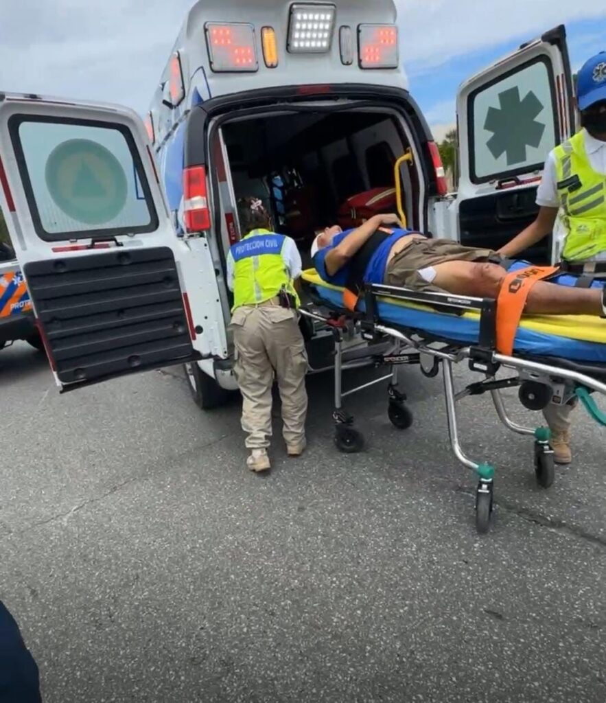 La fuerza del golpe provocó que el motociclista saliera proyectado y cayera al pavimento, sufriendo un fuerte traumatismo craneoencefálico. Automovilistas que presenciaron el hecho alertaron al número de emergencias 911, solicitando atención médica urgente.