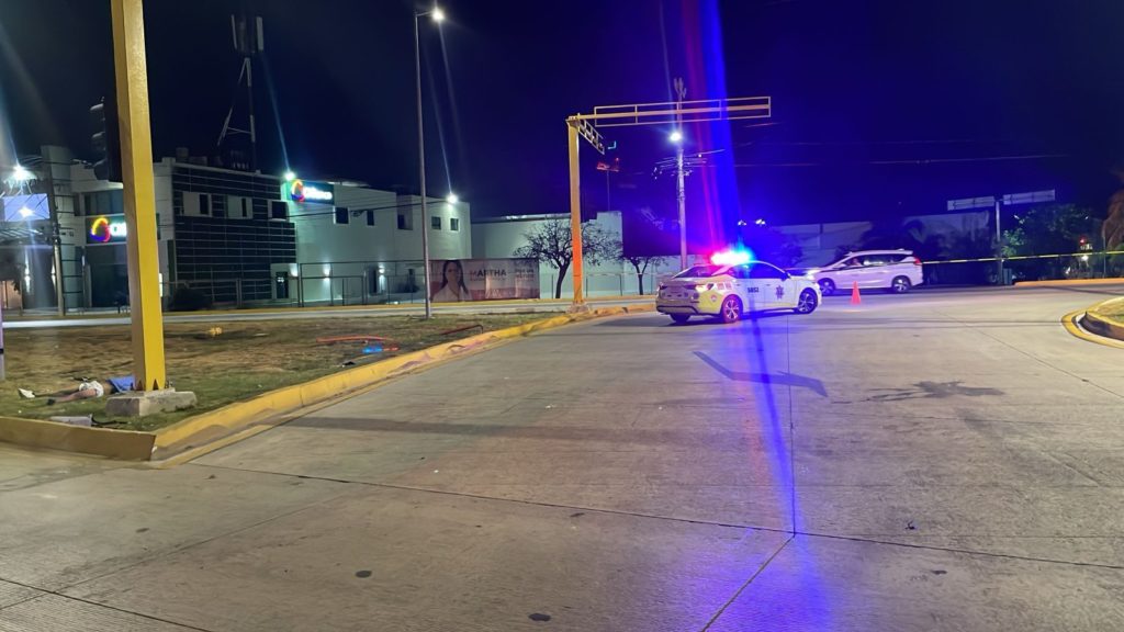 La información preliminar indicó, que el hombre que hasta el momento está como desconocido chocó contra el camellón y por la velocidad que llevaba se proyectó hacia el l poste del semáforo.