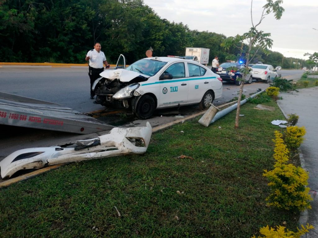 PLAYA DEL CARMEN, Quintana Roo, 27 de noviembre.- Un conductor del Sindicato Lázaro Cárdenas del Río, presuntamente alcoholizado, chocó contra un poste del alumbrado público y abandonó el vehículo, que acabó destrozado.