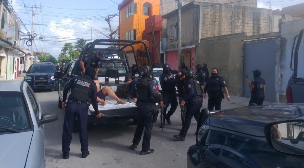 PLAYA DEL CARMEN, Quintana Roo, 22 de julio. – La detención fortuita de un sujeto sospechoso en el fraccionamiento Misión de las Flores derivo a impresionante operativo para capturar a otro grupo de sujetos armados en la colonia Colosio, acondicionado como una casa de seguridad.