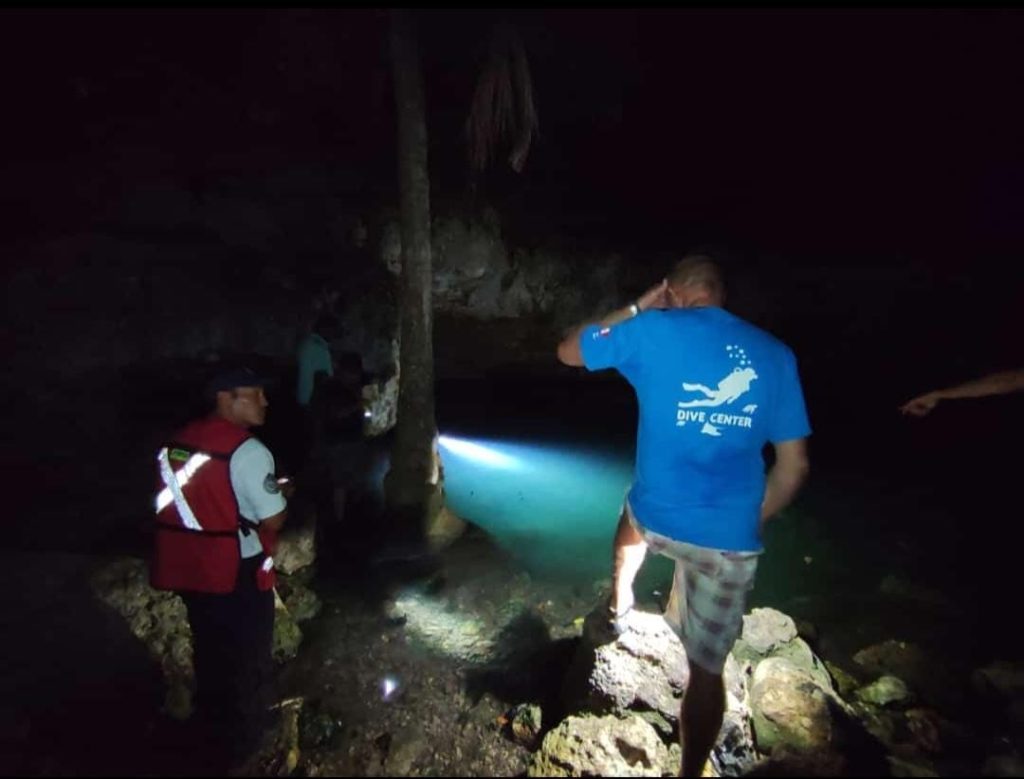 Los trabajos de búsqueda se dieron antes de la medianoche en el cenote que se encuentra al final de este fraccionamiento sobre la avenida Calzada Puerto Maya, cuando un grupo de trabajadores del proyecto del Gobierno Federal, solicitaron ayuda al número de emergencias 911.