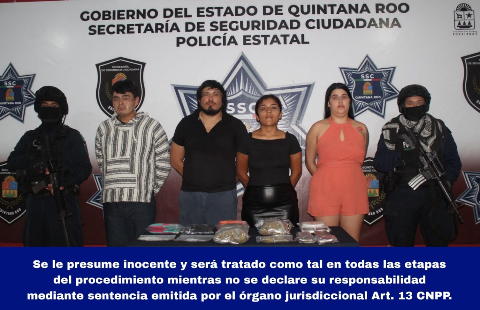 CANCÚN, Quintana Roo, 31 de agosto. — La Secretaría de Seguridad Ciudadana (SSC) puso a disposición a cuatro personas por su probable participación en delitos contra la salud, en su modalidad de narcomenudeo, en Benito Juárez (Cancún).