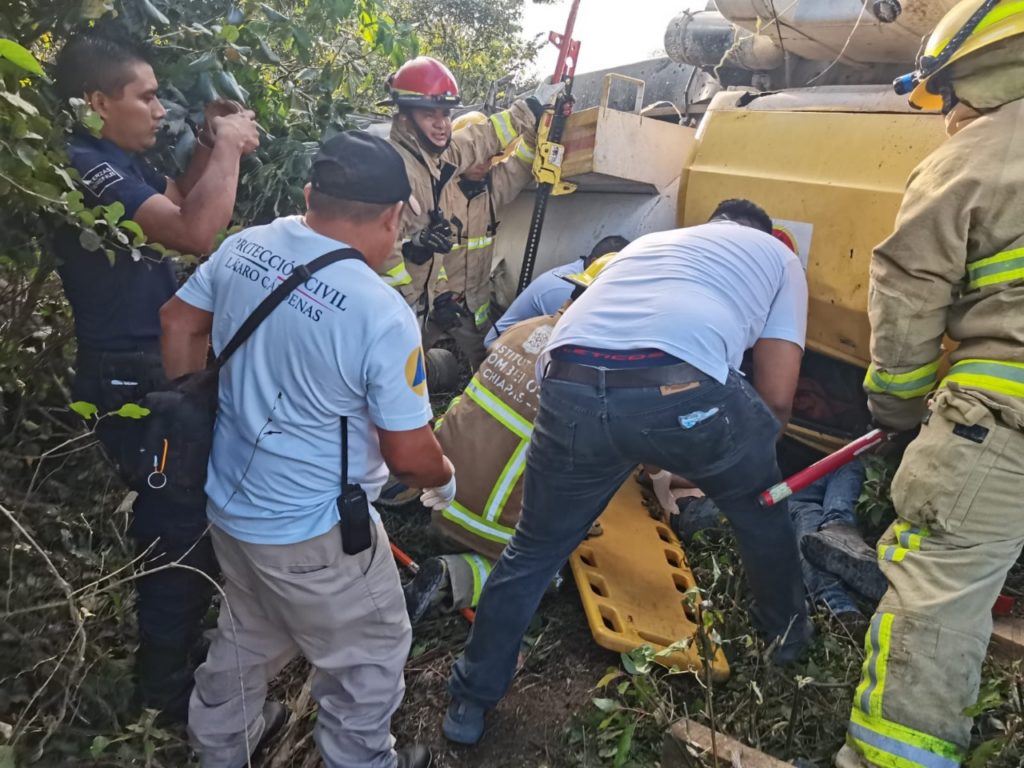 De acuerdo con el Director de Protección Civil Municipal, Armando Can, se trata de una pesada unidad que quedó volcada, con las llantas hacia arriba y el conductor quedó atrapado.