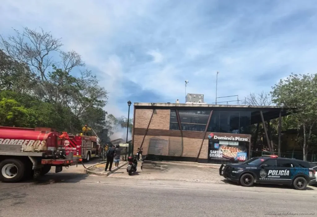 PLAYA DEL CARMEN, Quintana Roo, 20 de abril de 2026.— Un incendio en un predio colindante con la plaza Public Market generó una intensa movilización de cuerpos de emergencia la tarde de este domingo, luego de que el fuego se propagara rápidamente.