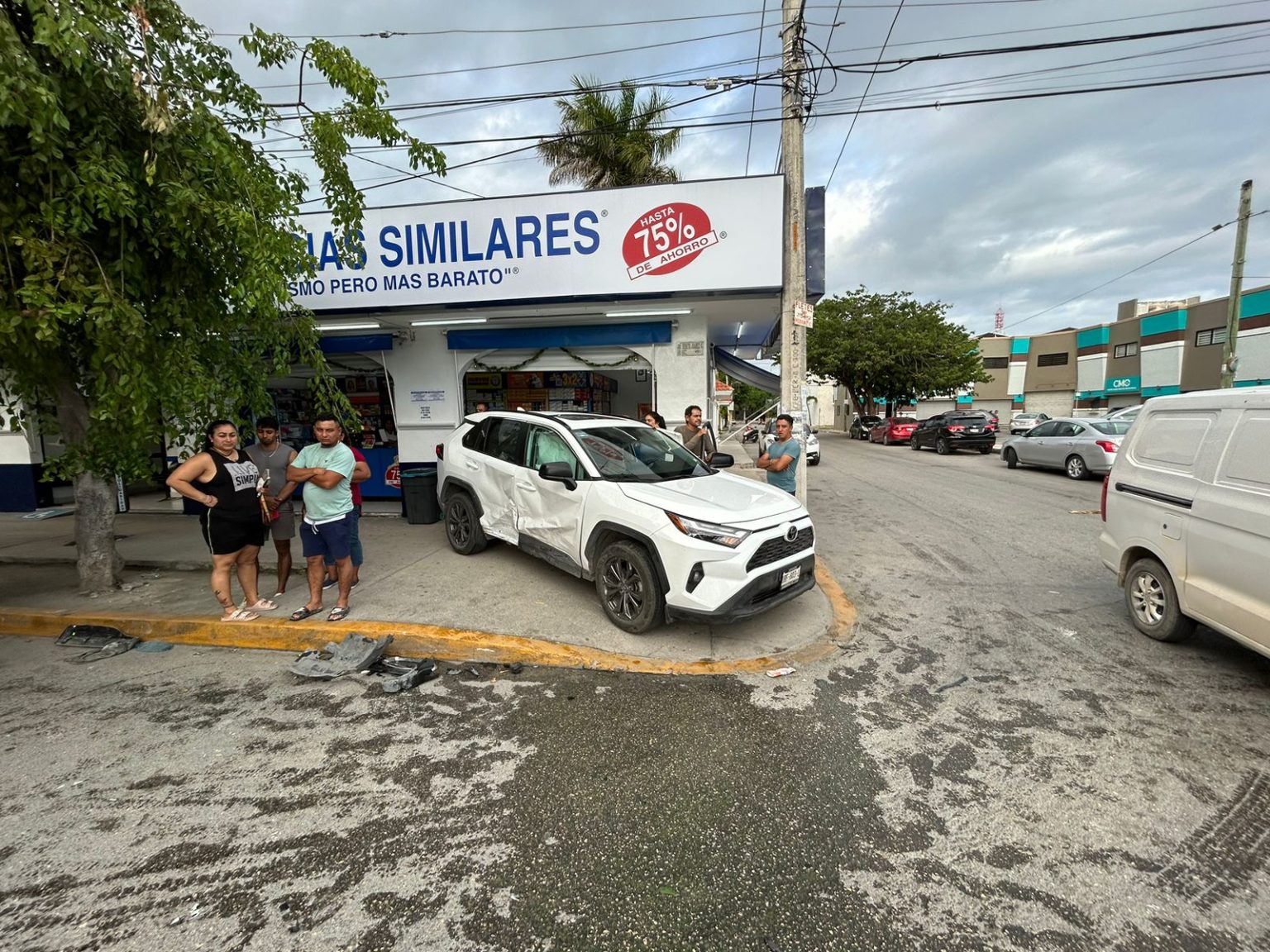 Por el golpe la camioneta giró subiéndose a la banqueta y estuvo a centímetros de entrar a una ‘Farmacia Similares’, que se encuentra en esa esquina, dejando muy asustados a los trabajadores que se encontraban atendiendo clientes.