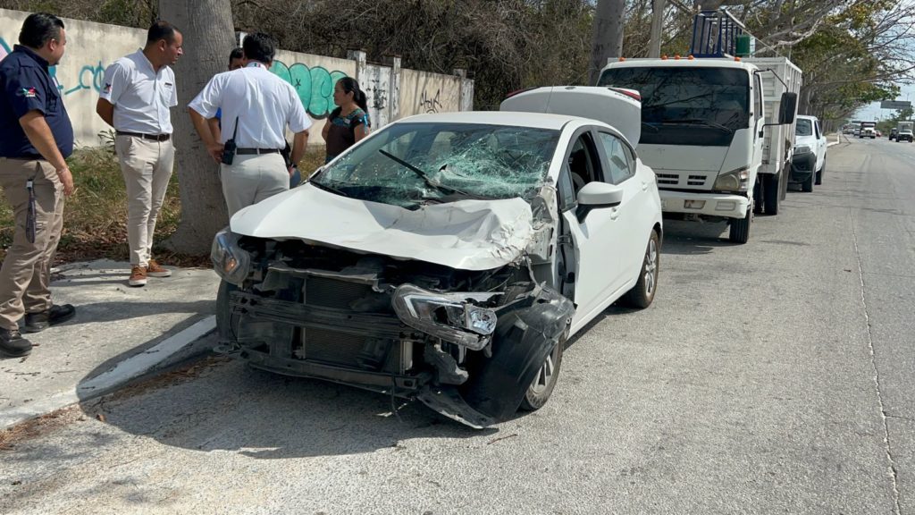 El accidente ocurrió alrededor del mediodía cuándo la conductora de un Nissan Versa, color blanco, sin placas, circulaba en dirección hacia el sur sobre el bulevar Playa del Carmen antes de llegar al parque Xcaret.