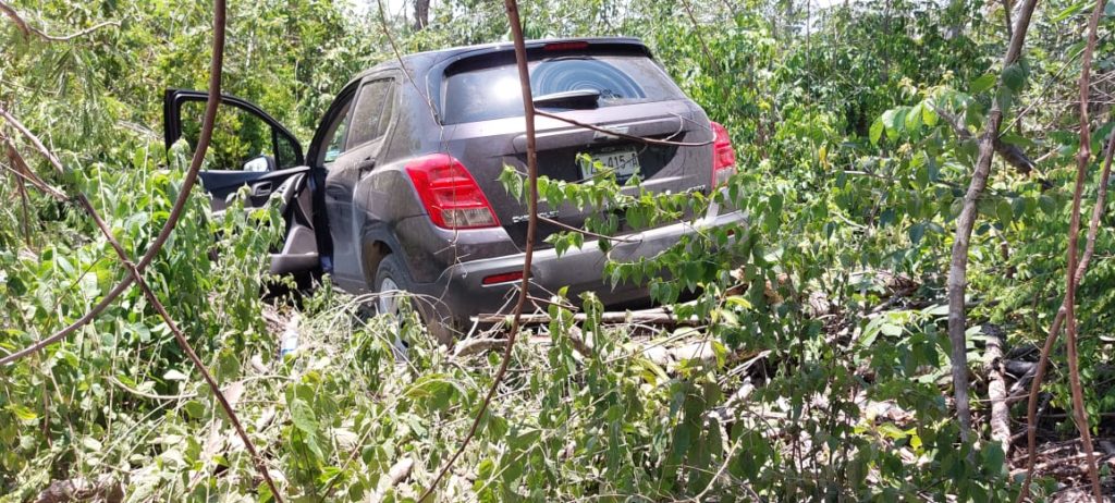 PLAYA DEL CARMEN, Quintana Roo, 01 de julio. – El exceso de velocidad en el que circulaba una mujer a bordo de su camioneta hizo que perdiera el control en las inmediaciones del fraccionamiento Real Lucerna, y se saliera de la carretera cayendo dentro de un área selvática, donde derribó algunos árboles.