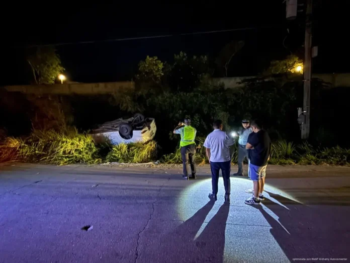 Taxista resulta lesionado tras volcadura en la carretera 307, en Puerto Aventuras