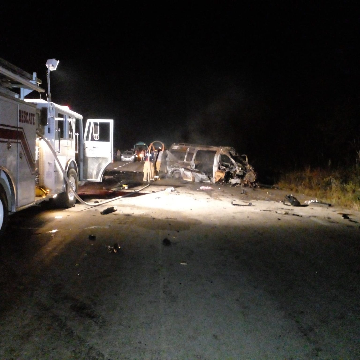 Tras el percance la unidad de pasaje comenzó a incendiarse, donde ocho personas entre los cuales se encontraban tres menores de edad quienes lamentablemente perdieron la vida calcinados al no poder salir, ya que habían quedó atrapados entre los fierros retorcidos; y otras ocho personas que resultaron lesionadas que fueron trasladadas al hospital general de Felipe Carrillo Puerto.