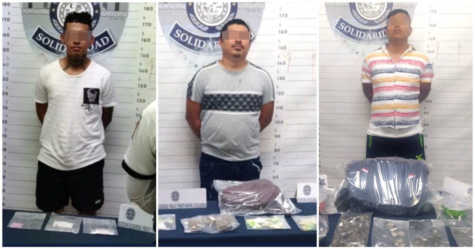 PLAYA DEL CARMEN, Quintana Roo, 27 de febrero. – Tres personas fueron aseguradas por policías de la Secretaría de Seguridad Pública y Tránsito Municipal de Solidaridad en posesión de posibles drogas, durante el operativo nocturno de vigilancia.
