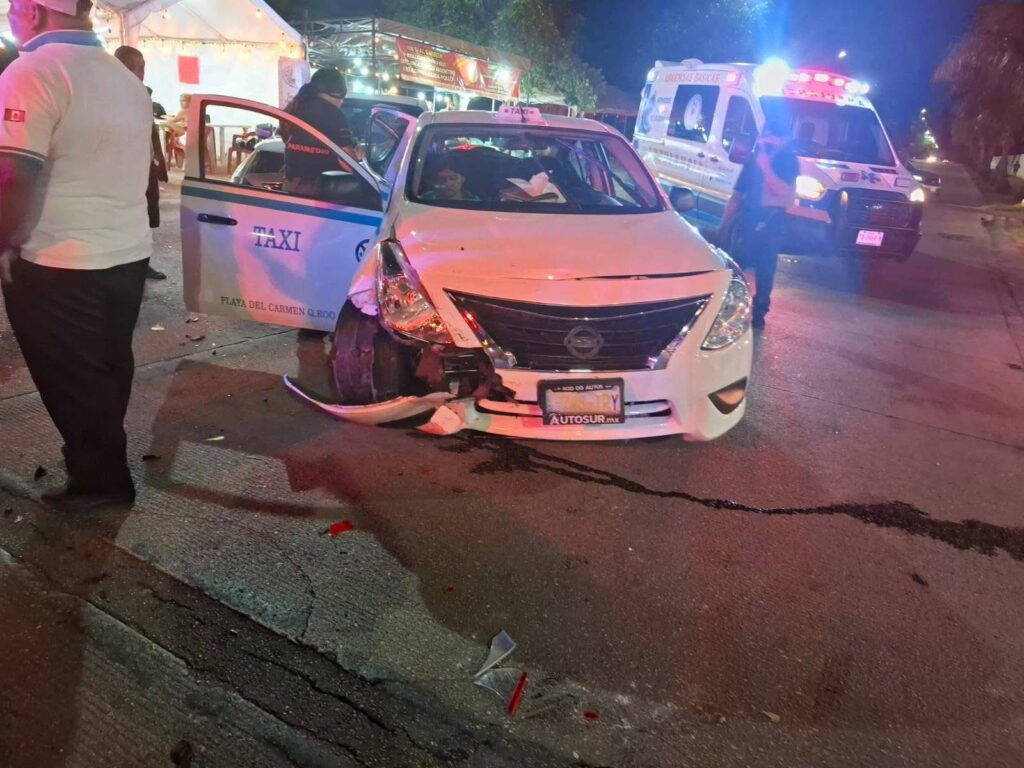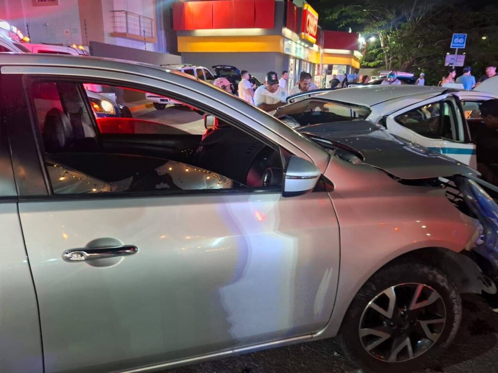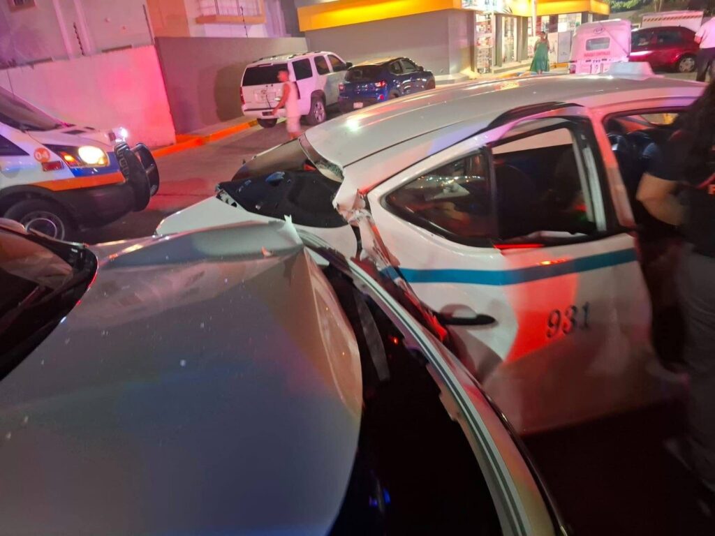 El accidente se registró alrededor de la 1:00 de la mañana, en el cruce de la calle 38 con la avenida Paseo del Mayab, cuando un automóvil particular Nissan Versa, color gris y con placas UUC-954K, impactó por alcance al taxi número 931 del sindicato Lázaro Cárdenas del Río.