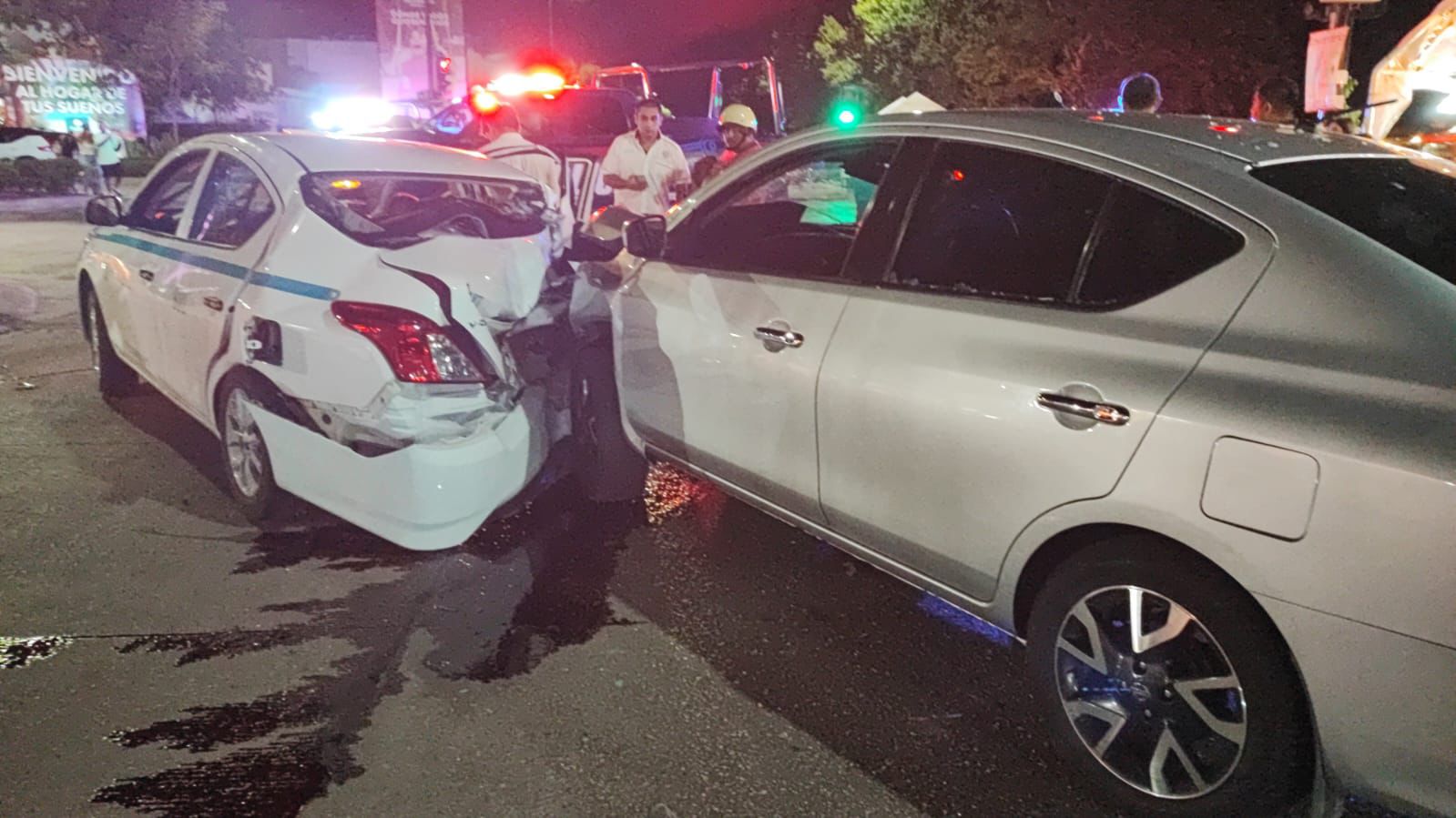 El accidente se registró alrededor de la 1:00 de la mañana, en el cruce de la calle 38 con la avenida Paseo del Mayab, cuando un automóvil particular Nissan Versa, color gris y con placas UUC-954K, impactó por alcance al taxi número 931 del sindicato Lázaro Cárdenas del Río.