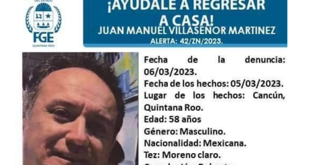 CANCÚN¸ Quintana Roo, 11 de marzo. – Luego de varios días de búsqueda fue localizado el cuerpo del empresario Juan Manuel V. al interior del área verde ubicado en la colonia doctores en el ejido Alfredo V Bonfil.