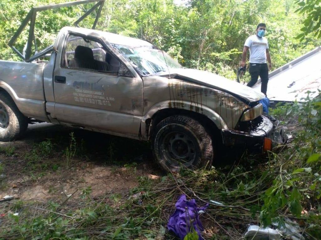 Se estableció que el conductor de la camioneta marca Chevrolet. pick up, color gris, con rumbo hacia Chetumal, pero perdió el control del volante, aparentemente a causa de un desperfecto mecánico, lo que derivó en que volcara y quedara llantas arriba a un costado de la vía de rodamiento.