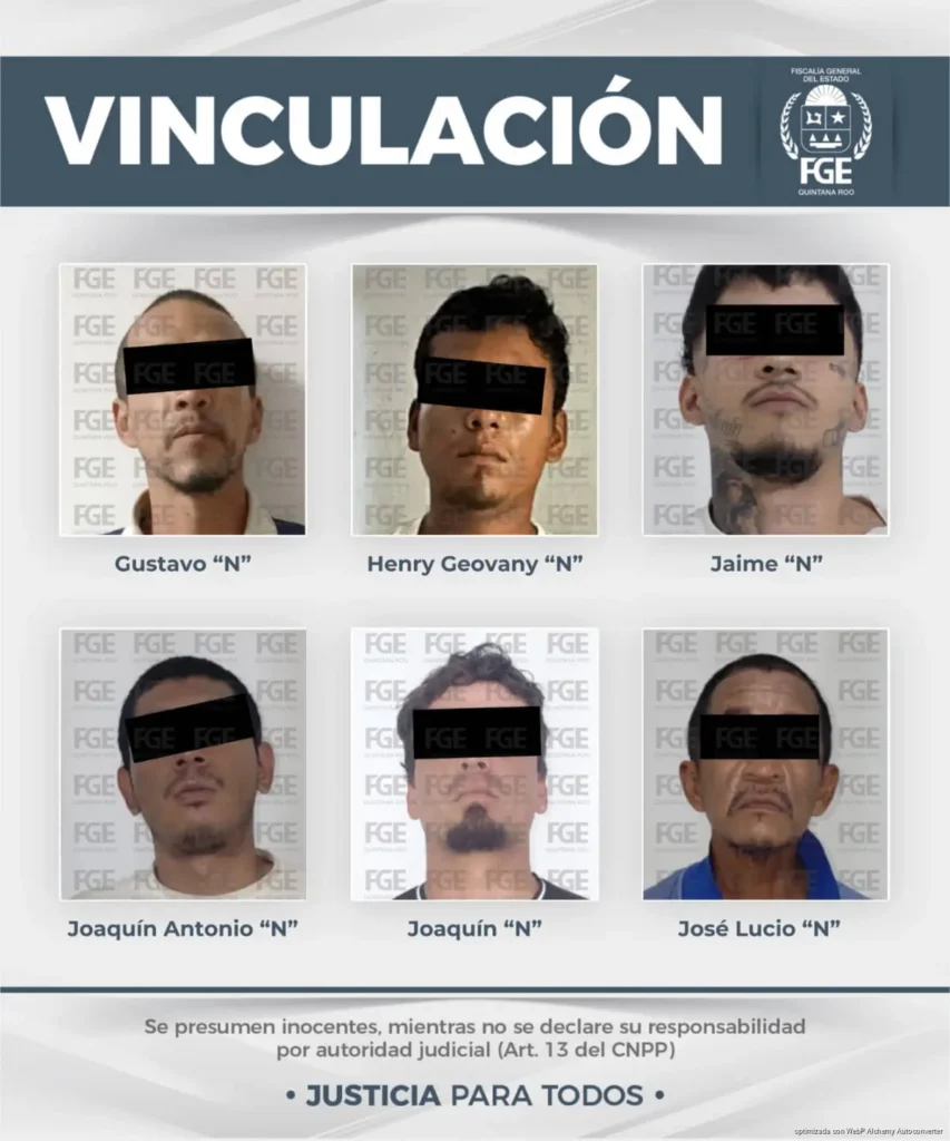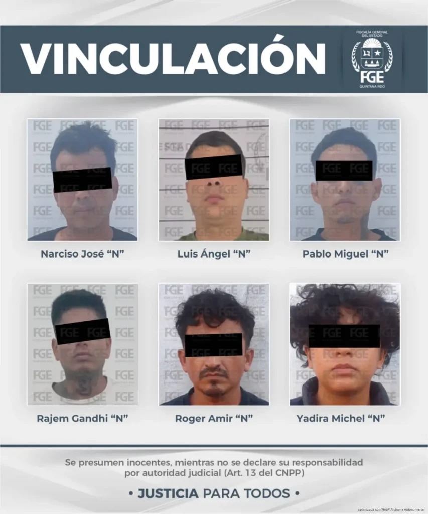 Los jueces impusieron prisión preventiva a César “N”, José Lucio “N”, Luis Ángel “N”, Carlos “N”, Henry Geovany “N”, Roger Amir “N” y Yadira Michel “N” por el tiempo que dure el proceso. En el caso de Carlos “N”, la autoridad determinó que permanezca bajo custodia en el Hospital General de Playa del Carmen debido a su estado de salud, hasta que pueda ser trasladado al Centro de Retención Municipal.